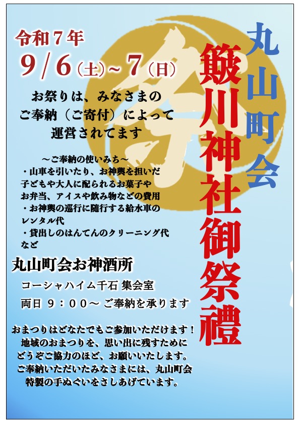 令和7年 丸山町会 簸川神社御祭禮のご案内